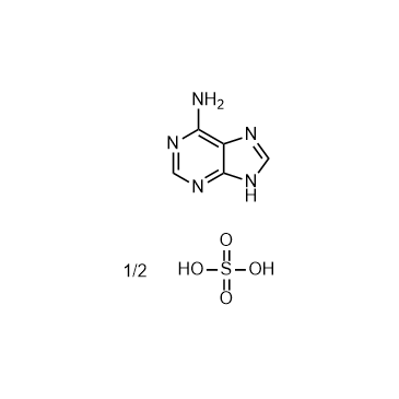 Adenine hemisulfate (6-Aminopurine hemisulfate), a purine, is one of the four nucleobases in the nucleic acid of DNA. Adenine hemisulfate acts as a chemical component of DNA and RNA. Adenine hemisulfate also plays an important role in biochemistry involved in cellular respiration, the form of both ATP and the cofactors (NAD and FAD), and protein synthesis[1][2]. IC50 & Target:Human Endogenous Metabolite