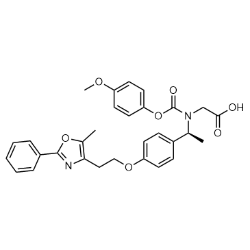 Peliglitazar is a dual α/γ PPAR activator. IC50 & Target:α/γ PPAR[1] In Vivo: Peliglitazar, is a novel dual α/γperoxisome proliferator-activated receptor (PPAR) activator. It has been shown that Peliglitazar has both glucose and lipid-lowering effects when tested in animal models of diabetes and dyslipidemia[1].