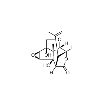 Corianin is a sesquiterpene lactone that can be isolated from the fruits of Coriaria ruscifolia. Corianin shows antibacterial activity against S. aureus and S. epidermis[1].