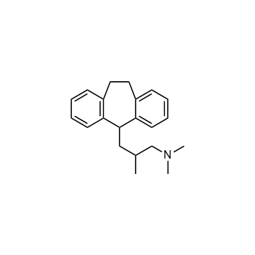 Butriptyline (Butriptylene) is an orally active tricyclic antidepressant that slightly enhances central 5-HT effects. Butriptyline does not inhibit brain norepinephrine uptake. Butriptyline can be used for depression research[1][2][3].
