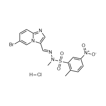 PIK-75 hydrochloride is a reversible DNA-PK and p110α-selective inhibitor, which inhibits DNA-PK, p110α and p110γ with IC50s of 2, 5.8 and 76 nM, respectively. PIK-75 hydrochloride inhibits p110α >200-fold more potently than p110β (IC50=1.3 μM)[1][2]. PIK-75 hydrochloride induces apoptosis[3].