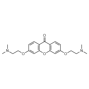 RMI 10874 is a tilorone analogue. Tilorone is a small-molecule, orally bioavailable antiviral agent. RMI 10874 completely abolishes lung colonization of an H-2 negative (GR9.B9) MCA-induced fibrosarcoma clone. In Vivo: The effect of RMI 10874 (RMI 10,874DA) in the abrogation of the metastatic spread of tumor cells is studied. Pre-treatment of BALB/c mice with the RMI 10,874DA completely eliminates lung colonization of an H-2-negative (GR9.B9) MCA-induced fibrosarcoma clone in an experimental metastasis assay[1]. The effect of a tilorone analogue (RMI 10,874DA) and anti-asialo GM1 serum is studied on the survival of BALB/c and C57B1/6 mice after i.v. injections of different syngeneic murine tumor cells. Natural killer (NK) cell activation in vivo by RMI 10874 prolongs survival and inhibits metastasis formation in mice, even when pretreatment consists of a single dose of the analogue[2]. Tilorone is a small-molecule, orally bioavailable drug that is used clinically as an antiviral[3].