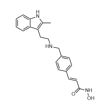 Panobinostat (Standard) (LBH589 (Standard)) is the analytical standard of Panobinostat (HY-10224). This product is intended for research and analytical applications. Panobinostat is a potent and orally active non-selective HDAC inhibitor, and has antineoplastic activities[1][2]. Panobinostat induces HIV-1 virus production even at low concentration range 8-31 nM, stimulates HIV-1 expression in latently infected cells[4]. Panobinostat induces cell apoptosis and autophagy. Panobinostat can be used for the study of refractory or relapsed multiple myeloma[3].