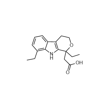 Etodolac (AY-24236) is a non-steroidal anti-inflammatory compound that is a non-selective inhibitor of COX (IC50=53.5 nM) IC50 & Target: IC50: 53.5 nM (COX)[1]. In Vitro: Post-marketing studies demonstrated that etodolac inhibition of cyclooxygenase is somewhat COX-2 selective similar to celecoxib and other "COX-2 inhibitors." Unlike rofecoxib, both etodolac and celecoxib can fully inhibit COX-1 and are designated as having "preferential selectivity" toward COX-2. The (inactive against COX) r-enantiomer of etodolac inhibits beta-catenin levels in hepatoma cells.
