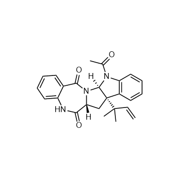 Acetylaszonalenin, a prenylated indole derivative, is a fungal metabolite.Acetylaszonalenin is a potent neurokinin-1 (NK1) receptor antagonist. Acetylaszonalenin shows inhibition of [3H]-SP binding to human astrocytoma cells with a Ki of 170 μM[1][2].