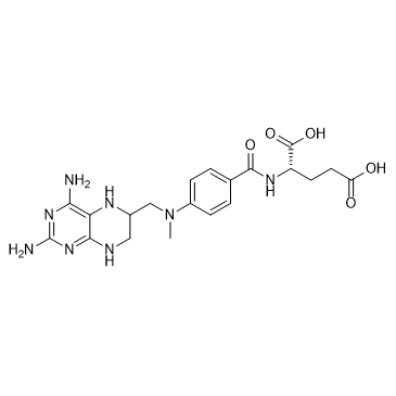 Tetrahydromethotrexate is a more potent folate antagonist than Methotrexate (HY-14519) in studies against certain bacteria (Streptococcus faecalis, Pediococcus erevisiae) and in animal models. Tetrahydromethotrexate is used in the research of cancer and autoimmune diseases[1].