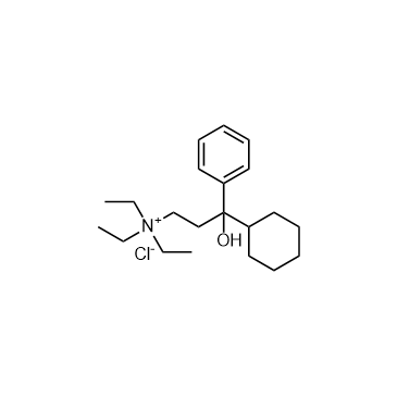 Tridihexethyl (Pathilon) chloride is an orally active anticholinergic agent and mAChR antagonist, shows activities of antimuscarinic and anticholinergic. Tridihexethyl chloride shows pronounced antispasmodic and antisecretory effects on the gastrointestinal tract. Tridihexethyl chloride can be used in studies of peptic ulcer disease and acquired nystagmus [1][2].