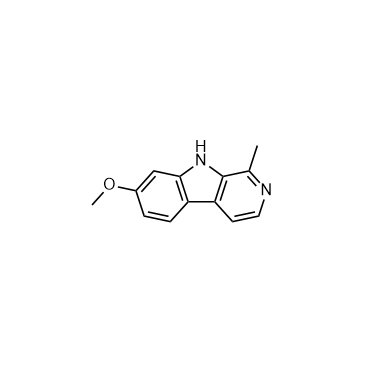 Harmine (GMP) (Telepathine (GMP)) is Harmine (HY-N0737A) produced by using GMP guidelines. GMP small molecules works appropriately as an auxiliary reagent for cell therapy manufacture. Harmine is a natural dual-specificity tyrosine phosphorylation-regulated kinase (DYRK) inhibitor with anticancer and anti-inflammatory activities. Harmine has a high affinity of 5-HT2A serotonin receptor, with an Ki of 397 nM[1]. In Vitro:Harmine (GMP) inhibits tau phosphorylation by DYRK1A by selected DANDYs, with an IC50 of 190 nM[2]. Harmine (GMP) negatively regulates homologous recombination (HR) by interfering Rad51 recruitment, resulting in severe cytotoxicity in hepatoma cells. Furthermore, NHEJ inhibitor Nu7441 markedly sensitizes Hep3B cells to the anti-proliferative effects of Harmine[3]. In Vivo:It is shown that brain water content is significantly increased in the TBI group. Treatment with Harmine (GMP) significantly reduces the tissue water content at 1, 3 and 5 days, compared with the TBI group. Harmine (GMP) treatment significantly reduces the escape latency at 3 and 5 days, compared with the TBI group. Post-TBI administration of Harmine (GMP) significantly improves the motor function recovery of the rats at 1, 3 and 5 days following TBI, compared with the TBI group without Harmine (GMP) treatment. The neuronal survival rate in the Harmine (GMP)-treated group is significantly increased, compared with the TBI group. Administration of Harmine (GMP) results in marked elevation in the expression of GLT-1, compared with the TBI group. The administration of Harmine (GMP) significantly reduces the expression of caspase 3, compared with the TBI group[4].