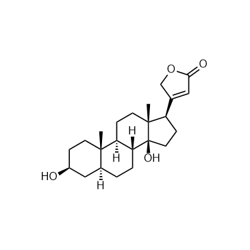 Uzarigenin (NSC 119993; NSC 277290; Odorigeni) is a carnolide can be isolated from Pergularia tomentosa and exhibits antiproliferative activity. Uzarigenin resists the proliferation of PC3 cells, HeLa cells, Calu-1 cells, MCF-7 cells and U251MG cells, with IC50 values of 0.3 μM, 3.0 μM, 8.0 μM, 6.0 μM and 6.0 μM respectively[1].