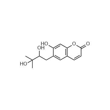 Peucedanol is a non-competitive inhibitor of CYP3A4 with a Ki value of 4.07 μM and a competitive inhibitor of CYP1A2 and CYP2D6 with Ki values of 3.39 μM and 6.77 μM, respectively[1]. In Vitro:Peucedanol (0, 2.5, 5, 10, 25, 50, and 100 μM; 0-30 min) is incubated with eight human liver CYP isoforms (CYP1A2, 2A6, 3A4, 2C8, 2C9, 2C19, 2D6, and 2E1), in pooled human liver microsomes (HLMs) for 30 min with specific inhibitors as positive controls.Peucedanol significantly inhibits the activity of CYP1A2, 2D6, and 3A4 in a dose-dependent manner with IC50 values of 6.03 μM, 13.57 μM, and 7.58 μM, respectively[1].