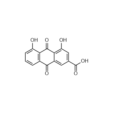 In Vitro:Rhein (0-80 μM, 72 h) inhibits the viability of NB4 cells in a dose-dependent manner[2].