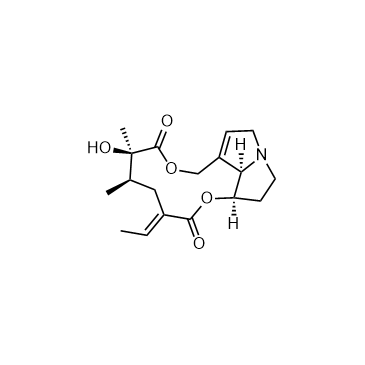 (-)-Integerrimine, a pyrrolizidine alkaloid, has antiulcerogenic activity. (-)-Integerrimine is also a mutagenic and weakly clastogenic agent in Drosophila[1][2]. In Vitro: (-)-Integerrimine (0.00625-0.05 mM) also must have mutagenic activity in somatic cells of Drosophila. (-)-Integerrimine in general requires cytochrome P450-dependent metabolic activation to exhibit genotoxic activity[1].