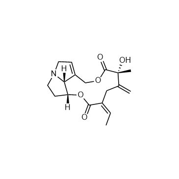 Seneciphylline is an orally effective hepatotoxic inducer. Seneciphylline is metabolized by CYP450 enzymes into active intermediates, which covalently bind to intracellular biomacromolecules such as proteins and DNA to form adducts, which in turn trigger a series of toxic reactions, such as inducing cell apoptosis and damaging mitochondrial function. Seneciphylline can be used in hepatotoxicity research.