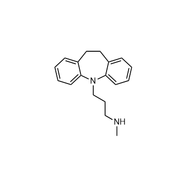Desipramine is a tricyclic psychotic compound, possessing antidepressant activity. Desipramine inhibits the norepinephrine reuptake receptor in the central nervous system and reduces the sleep-related loss of genioglossus activity, can be used to research the improvement of pharyngeal collapsibility[1][2]. IC50 & Target: Norepinephrine Reuptake Receptor[1]