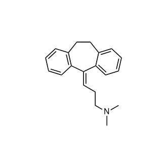 Amitriptyline (Standard) is the analytical standard of Amitriptyline (HY-B0527). This product is intended for research and analytical applications. Amitriptyline is an orally active tricyclic antidepressant (TCA). Amitriptyline mainly exerts its antidepressant effect by blocking SERT (Ki = 3.45 nM) and NET (Ki = 13.3 nM), thereby increasing the concentrations of 5-hydroxytryptamine (5-HT) and norepinephrine (NE) in the synaptic cleft. Amitriptyline is also an agonist at α2A and TrkA/TrkB receptors, thereby exerting analgesic and neurotrophic activities (inhibiting cell apoptosis). Amitriptyline can reduce inflammation, angiogenesis and fibrosis. Amitriptyline binds to DAT (with Ki = 2.58 μM). Amitriptyline has high affinity for a series of receptors and can antagonize muscarinic cholinergic receptors (M1/M2/M3/M4/M5 receptors) (Ki = 11-24 nM), H1 receptors (Ki = 0.5-1.1 nM), adrenergic α1 receptors (Ki = 4.4 nM), etc., resulting in a series of side effects. Amitriptyline can block sodium channels and hERG potassium channel (IC50 = 4.78 μM) and it has cardiotoxicity.