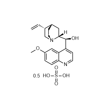 Quinidine Monosulfate is an antiarrhythmic agent. Quinidine Monosulfate is a potent, orally active, selective cytochrome P450db inhibitor. Quinidine Monosulfate is also a K+ channel blocker with an IC50 of 19.9 μM, and can induce apoptosis. Quinidine Monosulfate can be used for malaria research[1][2][3][4]. In Vitro: Quinidine Monosulfate shows cytotoxicity against MES-SA cells, and induces apoptosis[4]. In Vivo: Quinidine Monosulfate shows effects on the PTZ-induced seizure threshold[5].