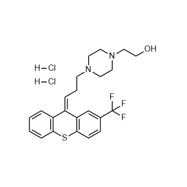 cis-(Z)-Flupentixol dihydrochloride is a potent and selective DA D1/D2 receptor antagonist, with Ki values of 0.38 nM and 7 nM for D2 receptor and 5-HT2A, respectively[1][2]. In Vivo: cis-(Z)-Flupentixol (0.25, or 0.5 mg/kg, i.p.) pretreatment dose-dependently reduces cocaine-induced activity[1].