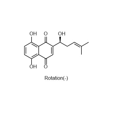 (-)-Alkannin, found in Alkanna tinctoria, is used as a food coloring. (-)-Alkannin shows anticancer activity, arrests cell cycle, and induces apoptosis. (-)-Alkannin improves hepatic inflammation in a Rho-kinase pathway[1][2][3]. In Vitro: (-)-Alkannin inhibits HCT-116 and SW-480 cells growth with IC50s of 2.38 and 4.53 μM, respectively[1].