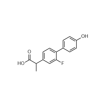 4'-Hydroxy flurbiprofen is an oxidative metabolite of Flurbiprofen (HY-10582) via the cytochrome P450 enzyme system. 4'-Hydroxy flurbiprofen inhibits COX-1 by 94% at a concentration of 1000 µM[1]. In Vitro:4'-Hydroxy flurbiprofen cannot inhibit COX-1 and COX-2–catalysed oxygenation of arachidonic acid, but inhibits cyclooxygenation of 2-arachidonoylglycerol (2-AG) completely at 300 µM and partially at concentrations of 100 µM and 30 µM[1].
