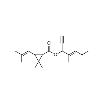 Empenthrin (S-2852F) is a synthetic pyrethroid. Empenthrin can be used in insecticides. Empenthrin shows a clear species-specificity in the inhibitory effect on the Pentobarbital (PTB)-metabolizing enzyme(s). Empenthrin prolongs PTB induced-sleeping time in mice through an inhibition of the PTB-metabolizing enzyme(s) in the liver, an effect that does not occur in rats. Empenthrin shows a clear species-specificity in the inhibitory effect on the PTB-metabolizing enzyme(s)[1][2]. In Vivo:In mice, pretreatment with Empenthrin prolongs Pentobarbital (PTB)-induced sleeping time in a dose-dependent manner[1].