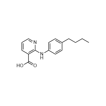 Butanixin (2-[(4-Butylphenyl)amino]-3-pyridinecarboxylic acid) is a cyclooxygenase (COX) inhibitor. It exerts anti-inflammatory and analgesic activity by reducing prostaglandin production. It is used in the research of musculoskeletal disorders[1].