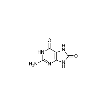 8-Hydroxyguanine is a DNA damage product under oxidative stress, which is formed when hydroxyl radicals attack guanine in DNA. 8-Hydroxyguanine induces mutagenesis and leads to a transversion from G to T. 8-Hydroxyguanine is a marker of DNA oxidative damage[1][2]. In Vitro: The most common product of ROS-induced base damage is 8-Hydroxyguanine. Failure to promptly remove 8-Hydroxyguanine often causes mutations during DNA replication. 8-Hydroxyguanine is cleared from cells by the 8-oxoG DNA glycosylase 1 (OGG1)-mediated oxidative damage base excision repair pathway so as to prevent cells from suffering dysfunction due to oxidative stress[2].