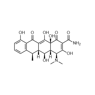 Doxycycline, an antibiotic, is an orally active and broad-spectrum metalloproteinase (MMP) inhibitor[1]. Doxycycline shows antibacterial activity and anti-cancer cell proliferation activity[1][2][3][4][5].