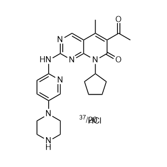 Palbociclib (hydrochloride) (Standard) is the analytical standard of Palbociclib (hydrochloride). This product is intended for research and analytical applications. Palbociclib (PD 0332991) hydrochloride is an orally active selective CDK4 and CDK6 inhibitor with IC50 values of 11 and 16 nM, respectively. Palbociclib hydrochloride has potent anti-proliferative activity and induces cell cycle arrest in cancer cells. Palbociclib hydrochloride can be used in the research of HR-positive and HER2-negative breast cancer and hepatocellular carcinoma[1][3][4].