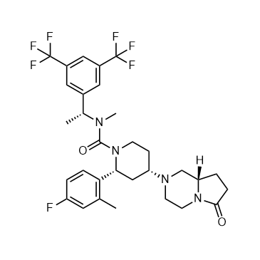 Orvepitant (GW823296) is a compound with the ability to inhibit pruritus induced by cancer epidermal growth factor receptor inhibitor (EGFRI) and is a neurokinin-1 receptor antagonist.