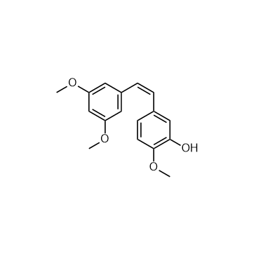 cis-3,4',5-Trimethoxy-3'-hydroxystilbene is a stilbene. cis-3,4',5-Trimethoxy-3'-hydroxystilbene induces cytochrome c release to the cytoplasm. cis-3,4',5-Trimethoxy-3'-hydroxystilbene-induced apoptosis is associated with mitochondrial release of cytochrome c. cis-3,4',5-Trimethoxy-3'-hydroxystilbene also suppresses tubulin polymerization. cis-3,4',5-Trimethoxy-3'-hydroxystilbene can be used for leukemic research[1].