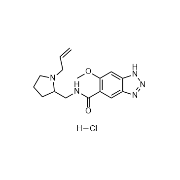 Alizapride is a potent antiemetic, acting as a dopamine receptor antagonist. Alizapride also used in human digestive disorders[1][3]. IC50 & Target: Dopamine receptor[1] In Vivo: Alizapride (2.5, 5, 10, 25 μg/kg; SC; 7 consecutive days) significantly reduces the bound IgG-sensitized erythrocytes with Splenic macrophages isolated from animals[2].
