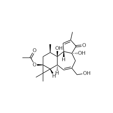 Prostratin (125-1000 nM) dose-dependently inhibits the growth of acute myeloid leukemia (AML) cell lines (HL-60, NB4, and U937 cells). Prostratin (125-100 nM) induces G1 arrest of AML cells and affects the cell-cycle-related molecules (pRb phosphorylation, CDKs, and p21) in HL-60 cells. Prostratin also causes differentiation in AML cell lines via activation of PKC. Furthermore, PKC-dependent activation of the MEK/ERK/MAP signaling pathway requires differentiation induced by Prostratin[2].
