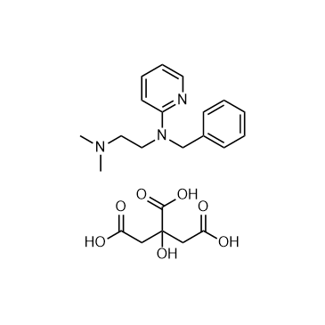 Tripelennamine citrate, an ethylenediamine derivative, is a potent histamine H1-receptor antagonist. Tripelennamine citrate lessens the allergic response of the organism caused by histamine. Tripelennamine citrate can be used for the research of rhinitis, conjunctivitis, and allergic and anaphylactic reactions[1][2][3].