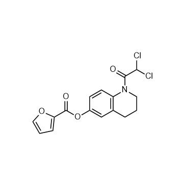 Quinfamide (WIN-40014) is an orally active class of dichloroacetyl derivative with significant anti-intestinal protozoan, particularly mmoeba histolytica activity. Quinfamide exhibits antiamoebic activity under solvent-free conditions with an IC50 of 28.15 μg/mL in a suspension condition. Quinfamide particles are actively engulfed by the amoebas, then cells are affected, and finally, amoebas are killed and lysed, and this process directly relies on the physical intake of the drug particles. Quinfamide can be used in the research of tropical parasitic infections such as amoebiasis and helminthiasis[1][2][3].