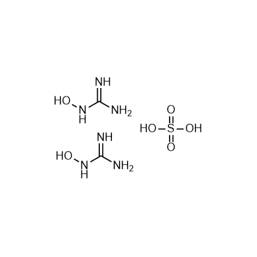 1-Hydroxyguanidine sulfate is an antitumor agent that inhibits mast cell P815, leukaemia P388, leukaemia L1210 and carcinosarcoma Walker 256 cells growth. 1-Hydroxyguanidine sulfate also has antiviral activity[1].