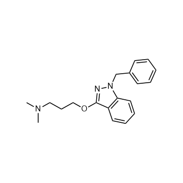 Benzydamine is an orally administered prostaglandin synthesis inhibitor that has anti-inflammatory, analgesic, antipyretic, and antibacterial properties. Benzydamine can inhibit TNF-α, stabilize cell membranes, and reduce oxidative stress within cells[1][2][3].