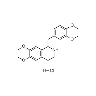 Tetrahydropapaverine hydrochloride is a tetrahydroisoquinoline (TIQ) compound with inhibitory effects on tryptophan hydroxylase (TPH) (IC50 = 5.7 μM). Tetrahydropapaverine hydrochloride decreases intracellular serotonin content in murine mastocytoma P815 cells, with an IC50 value of 6.2 μM. Tetrahydropapaverine hydrochloride can be used for studies on potential neurotoxicity in monoaminergic neurons[1][2].
