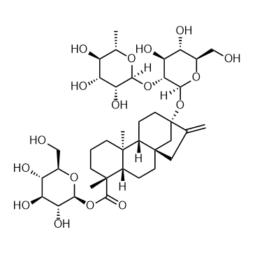 Dulcoside A (Standard) is the analytical standard of Dulcoside A. This product is intended for research and analytical applications. Dulcoside A is a glycoside that can be isolated from Stevia rebaudiana that elicits sweet and bitter taste through activation of TAS1R. Dulcoside A also exhibits anti-inflammatory activity[1][2].