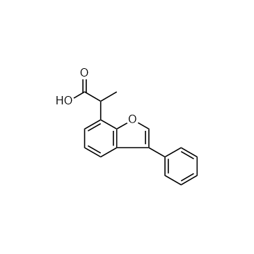 Furaprofen (R803) is an effective HCV replication inhibitor. Furaprofen (R803) is substantially more potent against genotype 1a and 1b replicons (EC50, ~30 nM) than against the genotype 2a replicon (EC50, ~1,000 nM). IC50 & Target: EC50: ~30 nM (HCV genotype 1a and 1b replicons), ~1000 nM (HCV genotype 2a replicon)[1] In Vitro: Furaprofen (R803) is potent and highly specific for HCV replication. The antiviral activity of Furaprofen has been determined by a reporter replicon assay with multiple repeats to be 29.88±8.05 nM, an ~3-fold improvement over the activity of the parent compound, R706. The potency of Furaprofen against the replicon is also confirmed by both Western blotting and TaqMan RT-PCR to be about 37 nM and 54.67±4.11 nM, respectively. To assess the general effect of Furaprofen on cell proliferation, a panel of primary cells and transformed human cell lines are treated with increasing doses of Furaprofen for 48 h, and the effect on cell proliferation is measured by an MTS-based cell viability assay. The the concentration that caused a 50% reduction in cell numbers in the absence of virus infection (CC50) of Furaprofen is found to range from 2 μM to ≥10 μM, depending on the cell type and proliferation status[1].