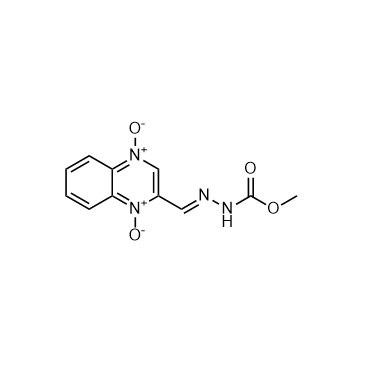 Carbadox is a quinoxaline-di-N-oxide antibiotic compound which is widely fed to nursery-age pigs to control enteric diseases and improve feed efficiency. IC50 & Target:Bacterial[1] In Vitro: The results of MTT assay demonstrate a dose-dependent decrease in mitochondrial activity in Vero cells at all concentrations of Carbadox. Treatment with Carbadox at the highest concentration of 160 μg/mL results in cell viability down to only 12%. Cells following Carbadox treatment show a dose-dependent increase of the DNA migration (p<0.01). The nuclear division index (NDI) reduces markedly with the increase doses of Carbadox[1]. In Vivo: Alpha diversities (Shannon diversity, Heips evenness, and inverse Simpson indices) of samples from medicated piglets compare to non-medicated piglets are significantly different at 2, 3, and 4 days after continuous Carbadox, but not different in either late Carbadox or at any time during the withdrawal period. Analysis of the community structure of bacteria in animals shows significant differences at days 3 and 4 of early Carbadox treatment ([R=0.32, p=0.015] and [R=0.54, p=0.003], respectively), but not before starting antibiotic treatment (p=0.82). No significant differences in E. coli colony forming units (CFUs) are observed during the Carbadox-treatment period of the study or late in the withdrawal period. E. coli CFUs are significantly different between the medicated and non-medicated groups on day 2 after the withdrawal of Carbadox[2].
