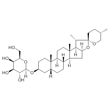 Timosaponin A1, a natural steroidal saponin, is a 5-lipoxygenase (5-LO), COX-2, and dipeptidyl peptidase 4 (DPP-4) inhibitor with IC50s of 3.29 µM, 36.43 µM, and 33.25 µM, respectively[1][2].