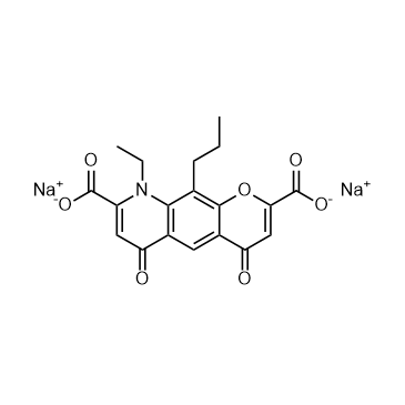 Nedocromil sodium suppresses the action or formation of multiple mediators, including histamine, leukotriene C4 (LTC4), and prostaglandin D2 (PGD2). IC50 & Target: Histamine, LTC4, PGD2[1] In Vitro: Nedocromil inhibits the release of histamine, LTC4, and PGD2 from mast cells challenged with antigen (with IC30 values of 2.1 μM, 2.3 μM, and 1.9 μM, respectively) and with anti-human IgE (IC30 values of 4.7 μM, 1.3 μM, and 1.3 μM, respectively)[1]. In Vivo: Nedocromil-treated diabetic mice show significantly improved heart function compared with controls. The contractility and relaxation forces show similar improvements. However, the cardiac function of Nedocromil-treated diabetic mice remains significantly impaired when compared with normal mice. Nedocromil can significantly improve cardiac function in mice with diabetic cardiomyopathy, but the treatment cannot restore normal function[2].
