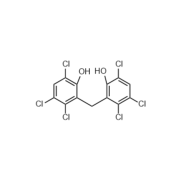 Hexachlorophene (0-50 μg/mL approximately, 30 min) has antibacterial activities against micrococcus sp., staphylococcus, staphylococcus epidermidis and streptococcus with IC50 values of 0.83 μg/mL, 1.5 μg/mL, 1.75 μg/mL, 1.3 μg/mL, respectively[2].