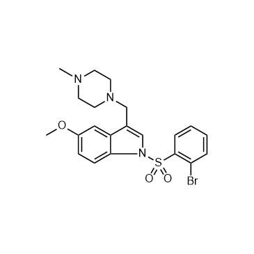 In Vitro:Masupirdine (10 μM) free base shows no agonist or partial agonist effects on luciferase activity but blocks serotonin-induced luciferase activity in the 5-HT6 receptor functional assay using CHO-K1 cells stably expressing human 5-HT6 receptor and CRE-Luc reporter gene[2].