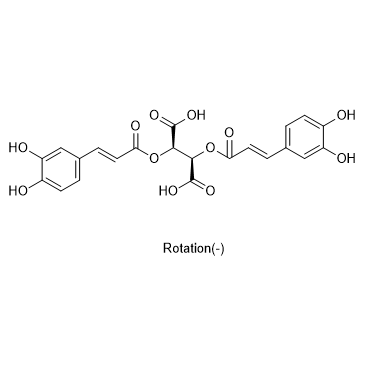 L-Chicoric Acid ((-)-Chicoric acid) is a dicaffeoyltartaric acid and a potent, selective and reversible HIV-1 integrase inhibitor with an IC50 of ~100 nM. L-Chicoric Acid inhibits HIV-1 replication in tissue culture[1][2][3].