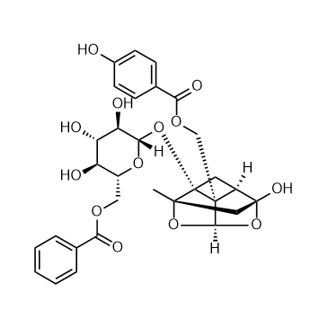 Benzoyloxypaeoniflorin, isolated from the root of Paeonia suffruticosa, is a tyrosinase inhibitor against mushroom tyrosinase with IC50 of 0.453 mM. Benzoyloxypaeoniflorin is NF-κB Inhibitor and contributes to improving blood circulation through its inhibitory effect on both platelet aggregation and blood coagulation[1][2][3].