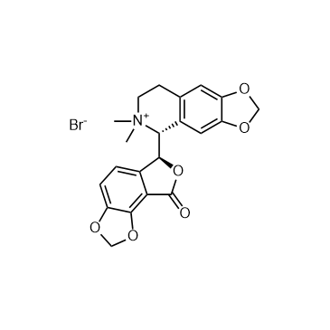 (-)-Bicuculline methobromide is a potent GABAA blocker. (-)-Bicuculline methobromide alters membrane properties and firing pattern. (-)-Bicuculline methobromide reduces the Apamin-sensitive afterhyperpolarization, while Apamin is a toxin isolated from bee venom to block small conductance Ca2+ -activated K+ channels. (-)-Bicuculline methobromide facilitates burst firing via blocking apamin-sensitive Ca2+ -activated K+ current[1].