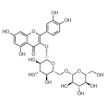 Quercetin 3-gentiobioside is a flavonoid found in Artemisia iwayomogi. Quercetin 3-gentiobioside inhibits aromatase with an Ki of 46.77 nM. Quercetin 3-gentiobioside inhibits aldose reductase (AR) and the formation of advanced glycation end products (AGEs), with IC50 values of 10.60 μM and 109.46 μM, respectively. Quercetin 3-gentiobioside inhibits proliferation of cancer cells and fibroblast-like synoviocytes. Quercetin 3-gentiobioside can be used for the research of cancer, such as lung carcinoma[1][2][3].