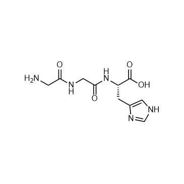 (S)-2-(2-(2-Aminoacetamido)acetamido)-3-(1H-imidazol-4-yl)propanoic acid is a histidine derivative[1]. In Vitro: Amino acids and amino acid derivatives have been commercially used as ergogenic supplements. They influence the secretion of anabolic hormones, supply of fuel during exercise, mental performance during stress related tasks and prevent exercise induced muscle damage. They are recognized to be beneficial as ergogenic dietary substances[1].