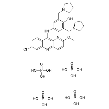 Pyronaridine tetraphosphate is an orally active Mannich base anti-malarial agent. Pyronaridine tetraphosphate is active against P. falciparum and Echinococcus granulosus infection[1][2].